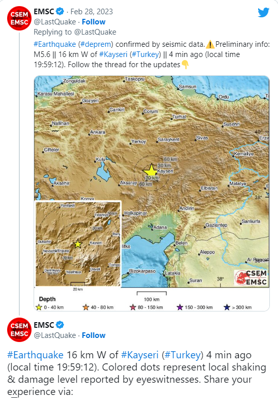 Sipas Institutit Euro-Mesdhetar, tërmeti ka pasur një thellësi fokale prej 10 km.