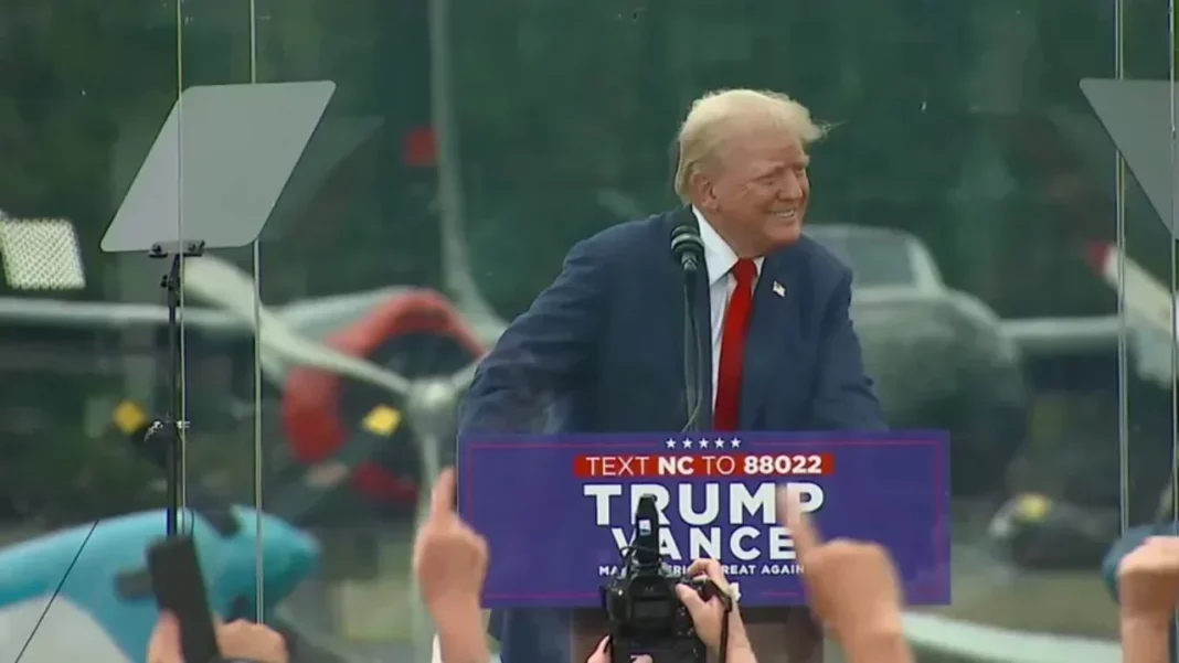 Në Karolinën e Veriut Trump u shfaq përpara mbështetësve të tij por i rrethuar nga të katërt anët e podiumit me xham antiplumb. Gjithsesi ajo që mori vëmendjen më të madhe ishte pikërisht gjesti që kandidati republikan bëri.