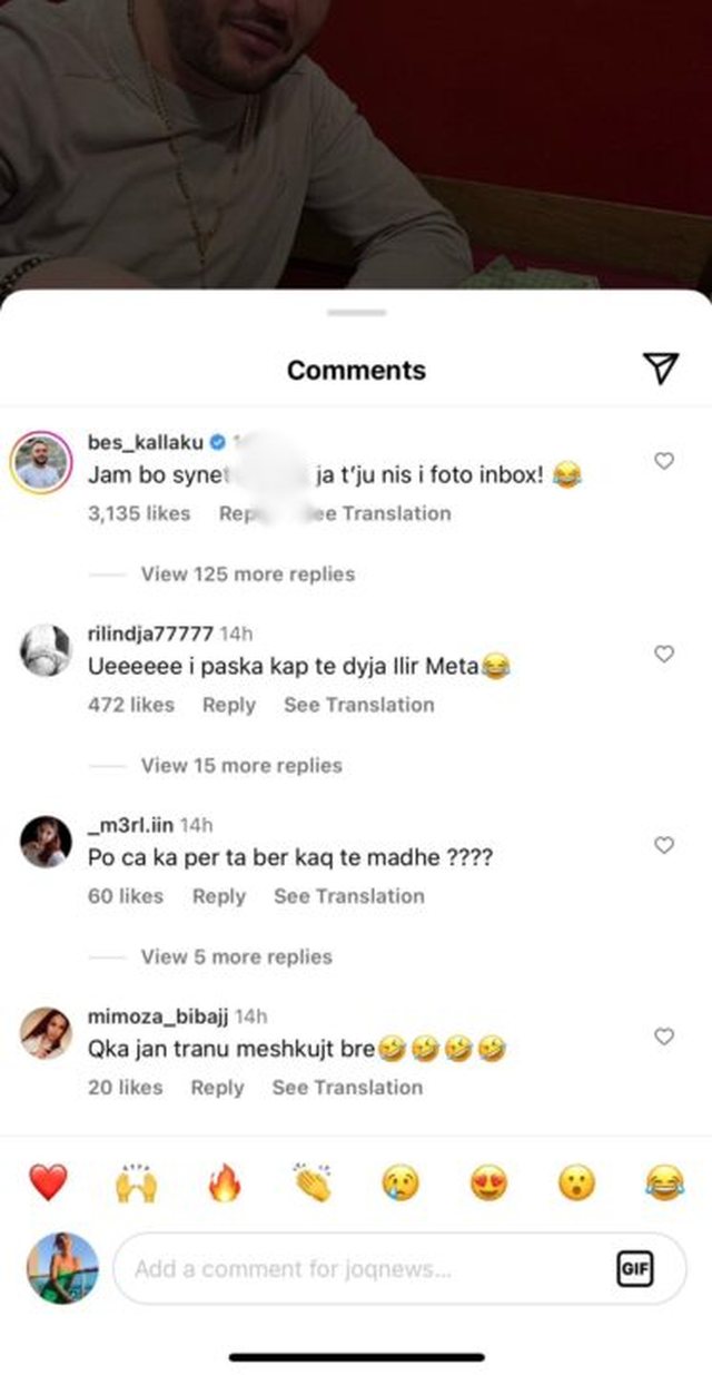 Lidhur me këto spekulime, Kallaku ka vendosur që të përgjigjet publikisht në një prej postimeve që qarkullon në rrjetet sociale, duke ironizuar akuzat. “Jam bërë synet, ja t’jua nis një foto në inbox”, ka shkruar këngëtari, koment të cilin e ka shoqëruar me ikonat e të qeshurës. Pas këtij komenti, aktori ka bërë një tjetër postim në profilin tij, ku shihet në një restorant dhe bashkangjitur shkruan: “Qetësohuni, kontrolloni inbox”