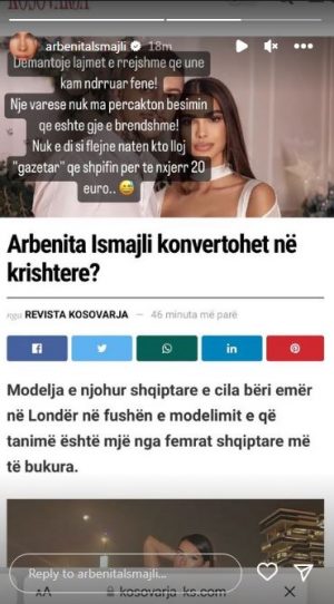 Mirëpo, së fundmi modelja nuk ka lënë më vend për thashetheme duke bërë një deklaratë në Instagramin e saj. Krahas një fotoje ku aludohej lajmi se ajo është e krishterë, Arbenita shkruan: