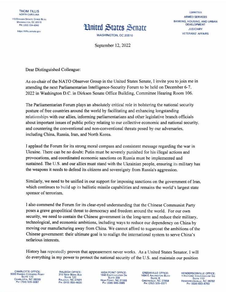 3-Po në dt 6-8 zhvillohet forumi inteligjencës dhe sigurisë ku unë kam qënë pjesë e ekipit organizator në disa aktivitete dhe jam ftuar nga Senatori Tom Tillis.