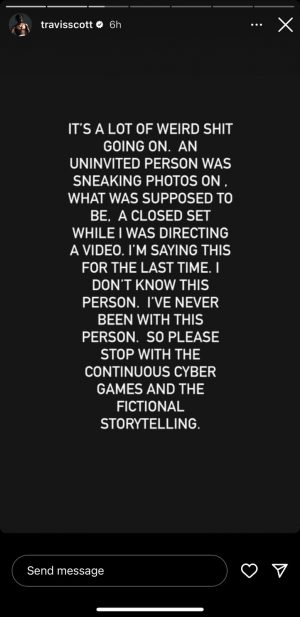 “Kam punuar me Travis për 8 vjet, kam qenë në set gjithë ditën, teksa ai po drejtonte një video për një artist tjetër. Kjo grua është delirante, nuk ka qenë me atë aty. Ai nuk merret me të në asnjë menyrë. S’ka asgjë tjetër për të shtuar këtu,”-thuhej në komentin që Travis postoi si kundërpërgjigje.