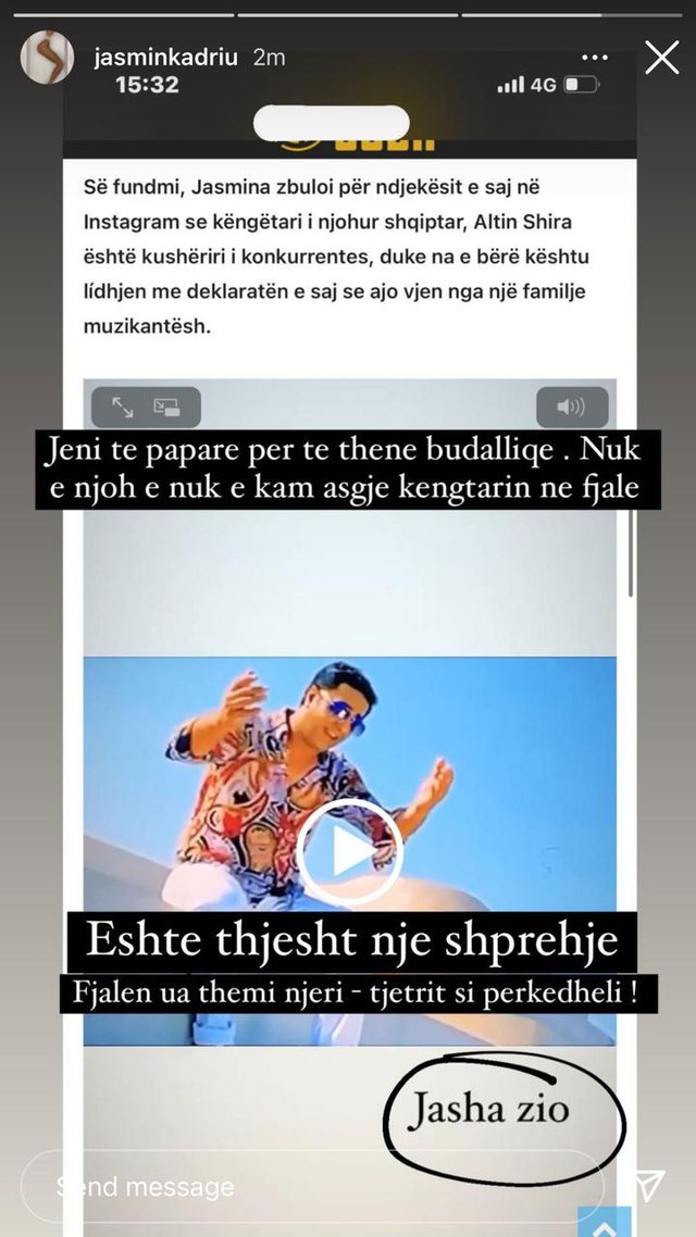 “Jeni të paparë për të thënë budalliqe. Nuk e njoh dhe nuk e kam asgjë këngëtarin në fjalë. “Jasha zio” është thjesht një shprehje, fjalën ua themi njëri-tjetrit si përkëdheli”, ka shkruar Jasmina në reagimin e saj.