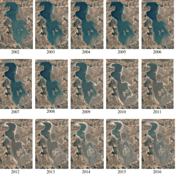 Shkatërrimi i liqenit të Urmisë ka qenë i shpejtë. Ai është përgjysmuar, nga 5,400 kilometra katrorë (2,085 milje katrorë) që ishte në vitet 1990 në vetëm 2,500 kilometra katrorë (965 milje katrorë) sot .
