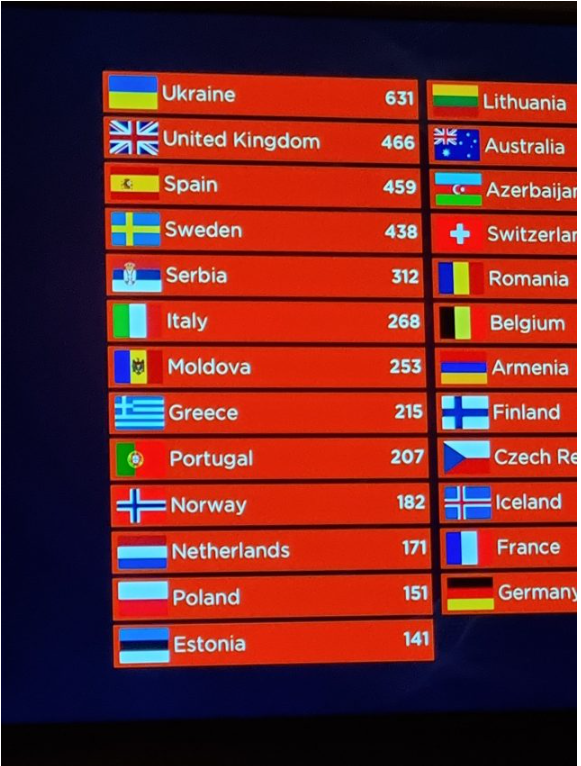 Pjesën dërrmuese të votave Ukraina e mori nga publiku, i cili e mbështeti atë nisur edhe prej luftës atje.
