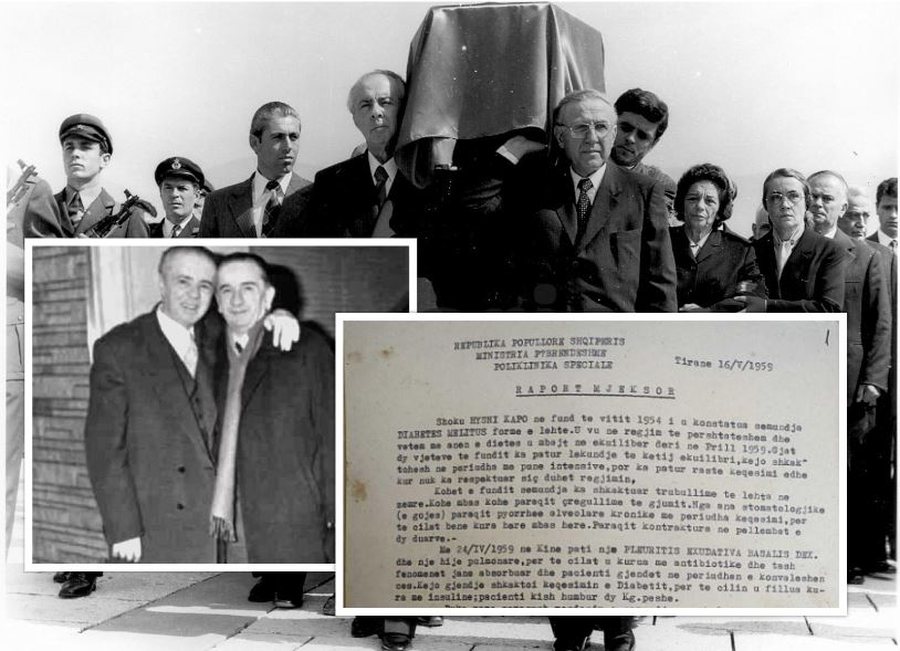 Shoku HYSNI KAPO, në fund të vitit 1954, i u konstatua sëmundja ‘DIABETES MELITUS’, formë e lehtë. U vu në regjim të përshtatshëm dhe vetëm me anën e dietës, u mbajt në ekuilibër, deri në Prill 1959. Gjatë dy vjetëve të fundit, ka patur lëkundje të këtij ekuilibri, kjo shkaktohesh në periudha me punë intensive, por ka patur raste keqësimi, edhe kur nuk ka respektuar siç duhet regjimin.