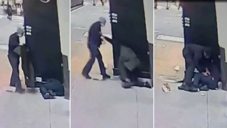 Por ky veprim i tij i mirë i kushtoi shtrenjtë! Disa momente pasi viktima mbulon butësisht të pastrehun me xhaketën e tij, Israeli e qëllon në këmbë dhe e shtyn burrin në tokë për ti rrëmbyer më tej portofolin nga xhepi i pantallonave të pasme, sipas pamjeve të siguruara nga New York The Post.
