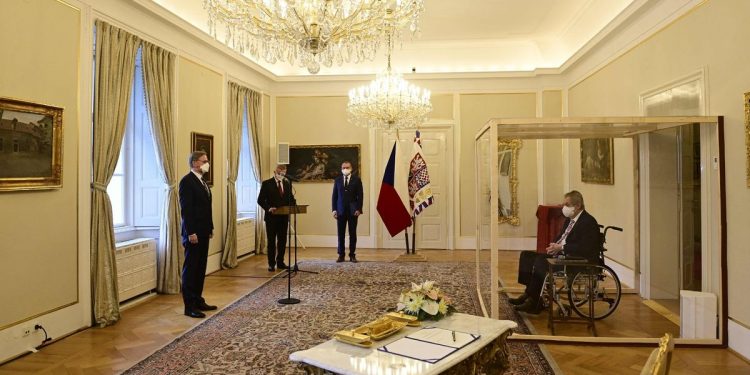 Presidenti i çekisë, Milos Zeman, zhvilloi një ceremoni të pazakontë nga rezidenca e tij në Pragë, gjatë të cilës ai dekretoi kryeministrin e ri edhe pse rezulton pozitiv me Covid.