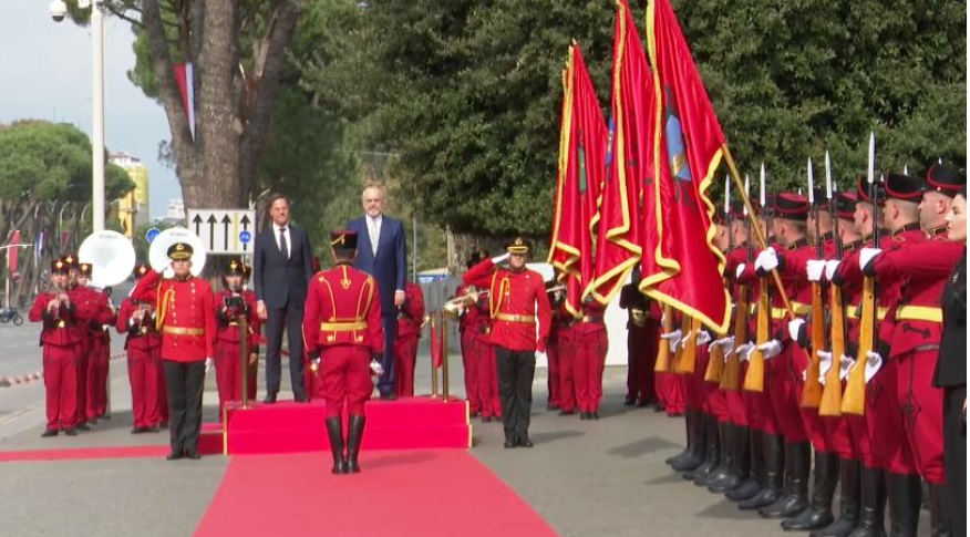 Kryeministri i Holandës, Mark Rutte ka mbërritur në Tiranë pak momente më parë në Tiranë ku është pritur nga kryeministri Edi Rama me një ceremoni zyrtare të organizuar përpara kryeministrisë.
