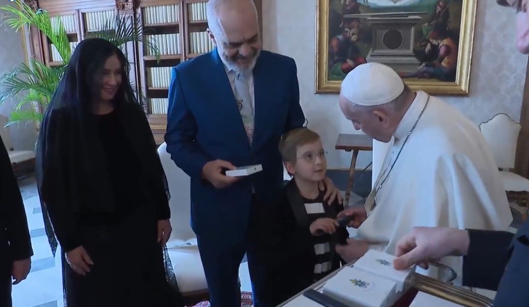 Kryeministri Edi Rama është pritur nga Papa Françesku në Vatikan. Bashkë me të shoqen Linda Rama dhe djalin e tyre, Zaho, Rama është futur dhe ka takuar Papa Franceskun.