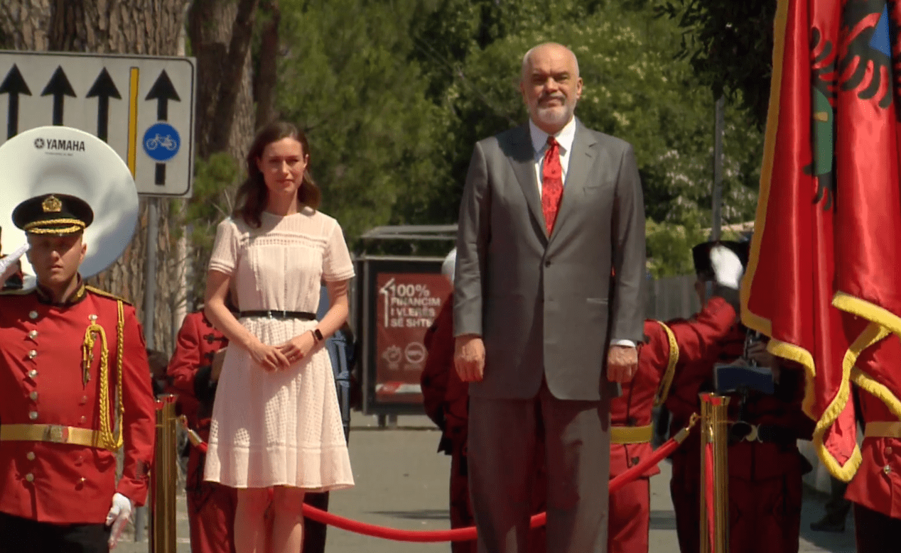 Kryeministrja Marin është pritur në një ceremoni zyrtare nga kryeministri Edi Rama. Siç shihet edhe në videon e mëposhtme, të dy kryeministrat kanë ecur në tapetin e kuq ku kanë  përshëndetur delegacionet, duke u drejtuar kështu zyrës së kryeministrit Rama.