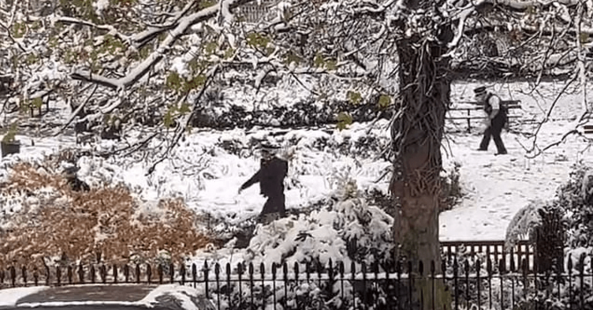 Pamjet u filmuan nga stafi në Kishën e Shën Palit në perëndim të Hackney të hënën pasdite, kur kryeqyteti u godit nga katër centimetra dëborë.