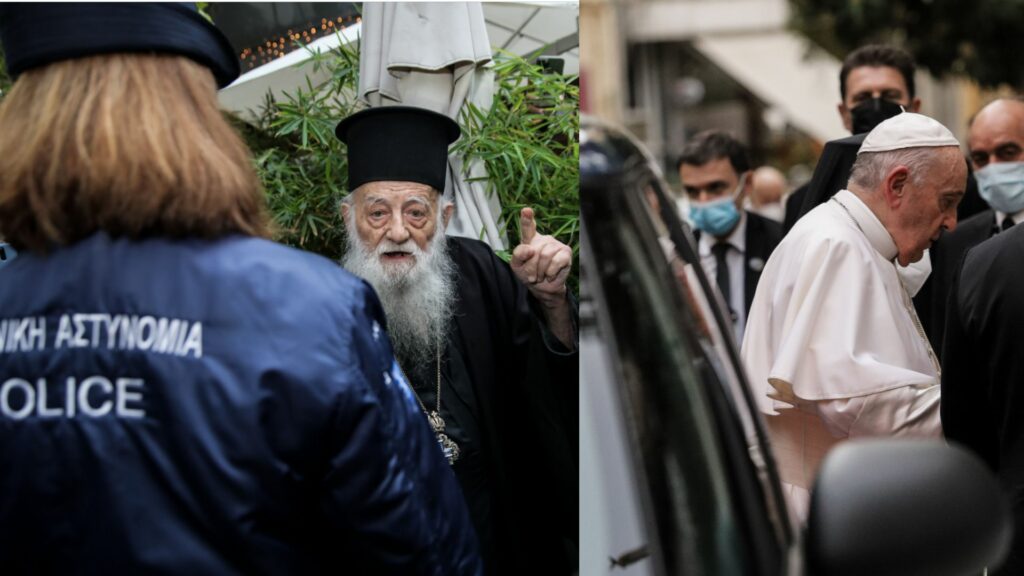 Protesta e një prifti të moshuar ra në qendër të vëmendjes së mbulimit ndërkombëtar të takimit të Papa Françeskut me Kryepeshkopin e Athinës dhe të gjithë Greqisë