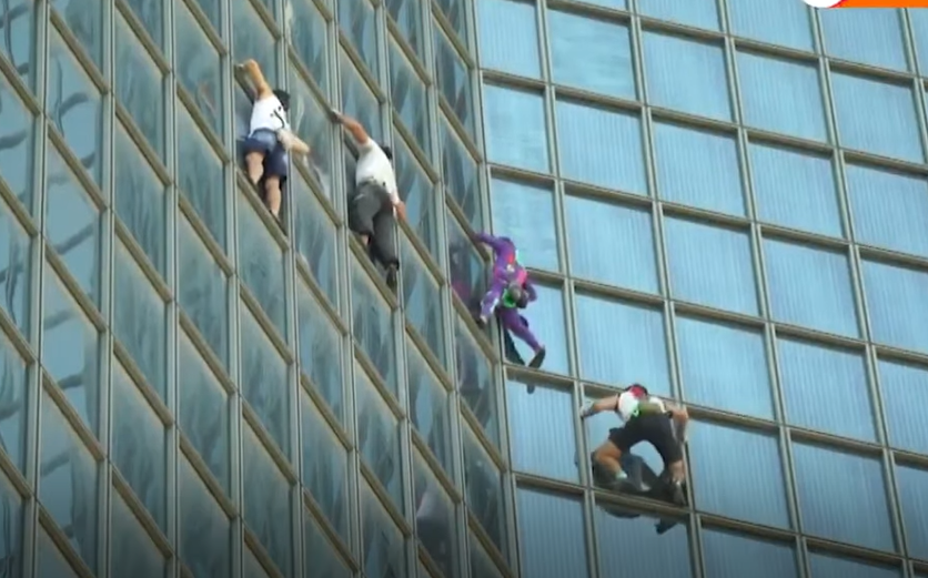 Katër francezë, ku tre prej tyre ishin alpinistë profesionistë të moshave 21, 28 dhe 33 vjeç, janë ngjitur si ‘merimanga’ në një kullë, pa asnjë masë mbrojtëse duke rrezikuar jetën. Megjithatë sapo kanë zbritur, organizatori i kësaj proteste 60-vjeçari Robert, është arrestuar pasi përveç vetes, i ka rrezikuar jetën edhe të tjerëve.