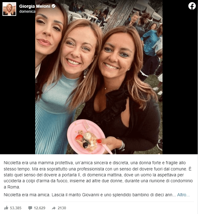 Nikoleta ishte shoqja ime. Ajo la burrin e saj Giovanni dhe një djalë të mrekullueshëm dhjetëvjeçar, Lorenzon. Me të sajën janë shkatërruar edhe familje të tjera, të cilave u shpreh afërsinë time.