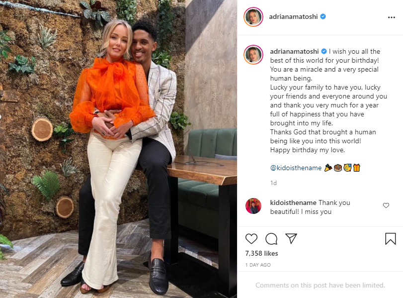 “Të uroj më të mirat e kësaj bote për ditëlindjen! Ti je një mrekulli dhe një njeri shumë special. Është me fat familja që të ka, me fat miqtë dhe të gjithë ata që janë rreth teje dhe faleminderit për 1 vit plot lumturi që ke sjellë në jetën time. Faleminderit Zotit që solli një njeri si ti në këtë botë! Gëzuar ditëlindjen dashuria ime!”, shkruan Adriana.