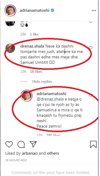“E keqja është se s’po të njoh as ty as Samuelin dhe e mira është që ti kënaqesh tu frymëzu prej nesh.. Paqe zemër”, i është përgjigjur aktorja.