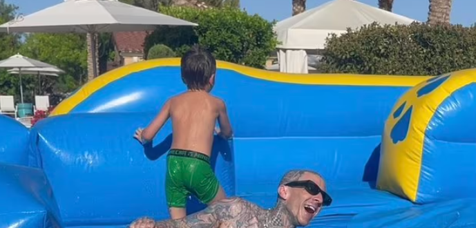 Në fotot e publikuara duket vetëm shumë pak nga shtëpia e saj miliona dollarëshe, ku po kalon një fundjavë me 3 fëmijët e saj dhe me të dashurin, Travis Barker.