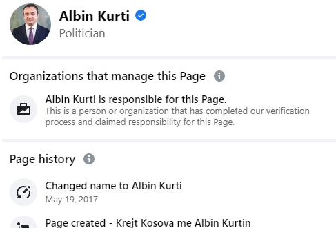 Faqja aktuale e Kurtit është hapur me emrin “Krejt Kosova me Albin Kurtin”, në atë kohë Lëvizja Vetëvendosje po pësonte rritje në përqindje gjatë zgjedhjeve parlamentare.