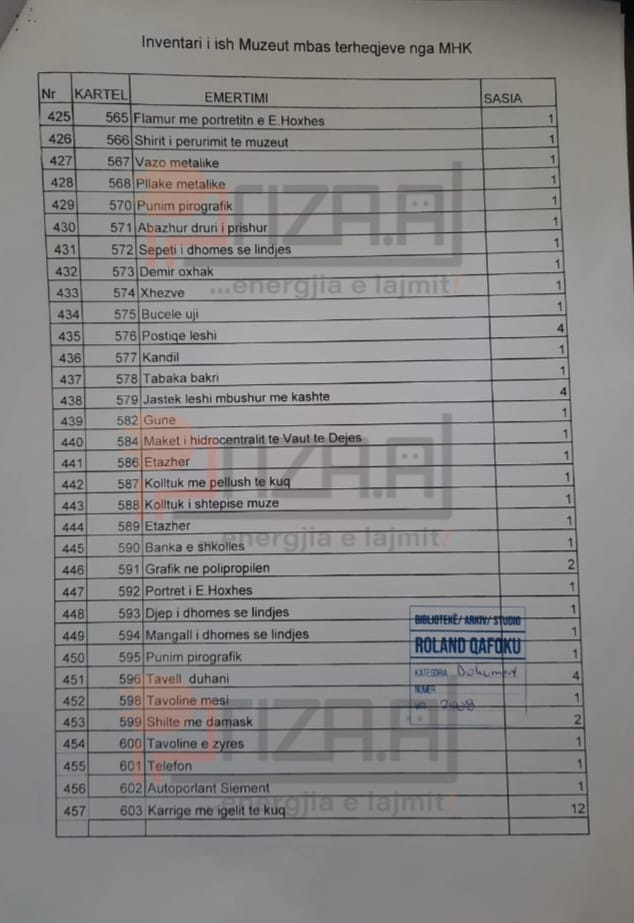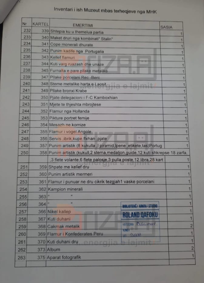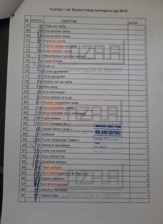 - Iventari me 466 objekte dhe sende personale të Enver Hoxhës që ndodheshin në muzeun e tij të Piramida.