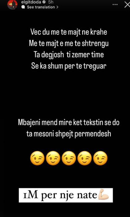 Dhe për ta ‘konfirmuar’ këtë, postimi i këngëtarit është ripostuar dhe në Instagramin e Luizit, çka mendohet se ky është një tekst i përgatitur nga Elgiti të cilin do e këndojë Luizi dhe është dedikim për Kiarën.