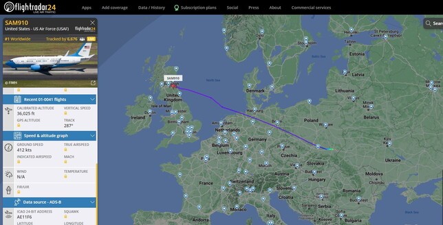 Fluturimi që po çon Zelensky në Shtetet e Bashkuara ndiqet online nga mijëra njerëz live. Avioni i presidentit ukrainas është sekret, por në faqen e internetit Flightradar24 ka mijëra që ndjekin rrugën e një Boeing të Forcave Ajrore të SHBA-së që u nis nga një bazë ushtarake në Poloni. Dhe gjithçka sugjeron se është avioni që po e çon Zelenskyn në Uashington ku do të pritet nga Joe Biden. Është hera e parë që nga fillimi i luftës me Rusinë që presidenti largohet nga Ukraina .