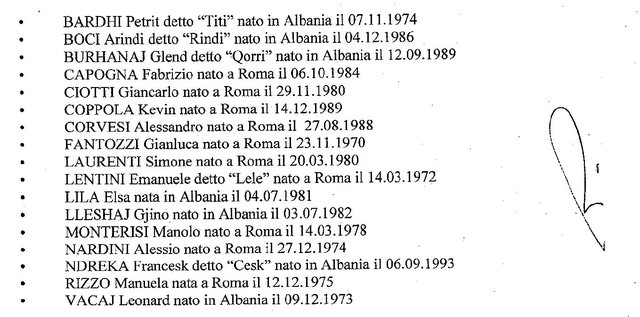 Të gjithë shqiptarët e përfshirë në bandën e drogës janë: Petrit Bardhi, Arindi Boci, Glend Burhanaj, Elsa Lila, Gjino Lleshaj, Francesk Ndreka dhe Leonard Vacaj.
