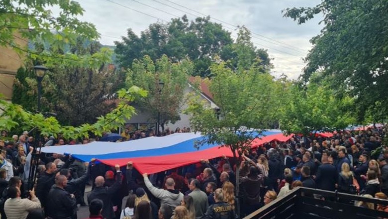 Në Zveçan ata kanë shpalosur një flamur gjigant të Serbisë mbi 200 metra të gjatë ndërsa vunë edhe këngë nacionaliste serbe.