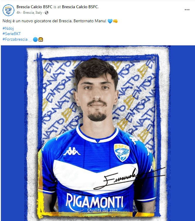 Emanuele Ndoj do vazhdojë të jetë lojtar i Brescias. Kartoni i mesfushorit shqiptar i përket klubit të Seria B prej vitit 2016. Dhe tashmë është arritur marrëveshja për të vazhduar bashkëpunimin, dhe pse u duk që gjërat do mbylleshin pasi gjysma e dytë sezonin e fundit përfundoi si huazim te Cosenza.